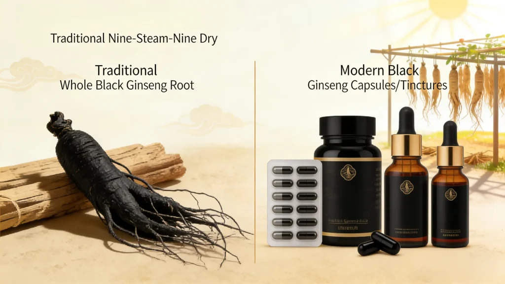 Both Nine-Steam-Nine-Dry and modern processing methods produce high-quality Black Ginseng Extract—but they cater to different consumer needs. Traditional processing offers heritage, natural transformation, and enhanced bioavailability, while modern techniques deliver consistency, affordability, and convenience.