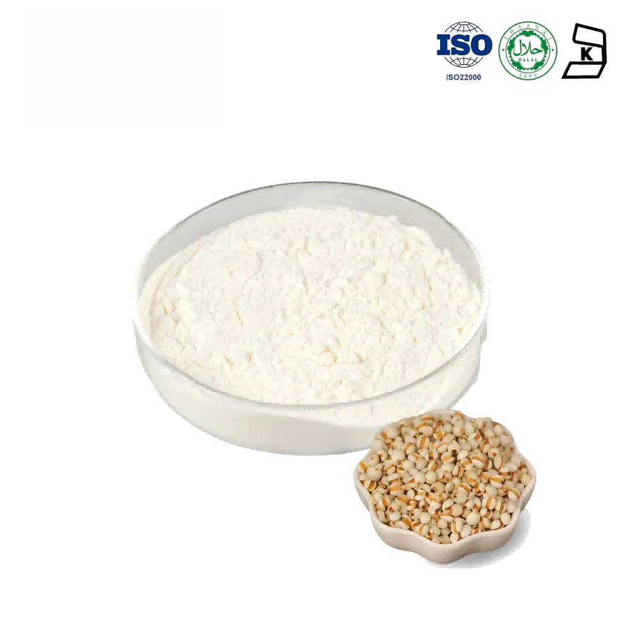 Job’s Tear Extract is a natural skin care raw material with excellent effects. The polysaccharide component has the functions oftreating warts and blemishes, whitening, emollient and wrinkle removing. It can soften the skin cutin, improve rough skin texture, and make the skin smooth and delicate. At the same time, the vitamin E in the extract enhances the antioxidant effect, which can inhibit skin oxidation, prevent pigmentation, and achieve the effects of whitening and spot removal. It also helps delay skin aging, maintain skin elasticity, and keep the skin in a youthful state.